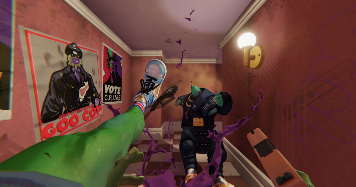 L’ultimo gioco dello sviluppatore di Terra Nil, Free Lives, è uno sparatutto in prima persona dal ritmo incalzante con una novità: i calci letali. Si tratta di un espediente monotematico che non si evolve molto oltre il primo livello, ma Free Lives non è esattamente timida al riguardo. Il titolo Anger Foot evoca un certo tipo di film di serie B, che mette tutte le carte in tavola prima ancora di vedere un trailer. Pensa a Killer Klowns from Outer Space o a Sharknado. Film di questo tipo non pretendono di essere grandi opere d’arte, ma sono sicuri di sé.