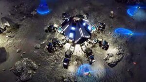 Tuttavia, riesci a prendere il controllo del Mechaplex, un enorme robot utilizzato dalla compagnia mineraria che ora è la tua nuova casa. Grazie alle sue dimensioni colossali, puoi costruire un insediamento modulare sopra di esso e, grazie alle sue enormi gambe, puoi anche attraversare la superficie lunare per cercare altri sopravvissuti e sfuggire ai raggi del sole.